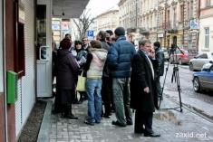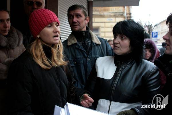 Сьогодні, 12 березня, вкладники банку "Надра" заблокували вхід до приміщення центрального відділення банку у Львові (вул. Пекарська,7).