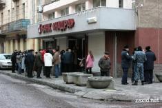 Пікетувальники не впускають до приміщення клієнтів банку, розповідаючи їм про те, що у банку грошей немає.
