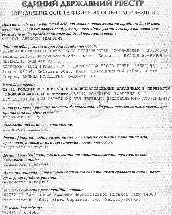 В кругу предпринимателей поговаривают, что общий долг «Союз-Лидера» перед поставщиками и банками перевалил за цифру в 200 млн. гривен. Эта сумма становится интереснее, если учесть, что объём уставного фонда компании «Союз-Лидер» всего 1000 гривен. А в соответствии с уставным капиталом определяется минимальный размер имущества ООО, которое гарантирует интересы его кредиторов.
