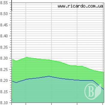 До 11:00 рівні знизилися до 8,1800/8,2200, і до 12:00 цінові рівні знизилися до 8,1680/8,1880 грн./дол.