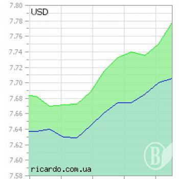 Пропозиції комерційних банків з купівлі долара коливаються в межах 7,640-7,755 грн./дол., з продажу – 7,76-7,82 грн./дол.