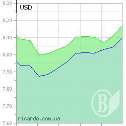 Пропозиції комерційних банків з купівлі долара коливаються в межах 8,03-8,17 грн./дол., з продажу – 8,16-8,25 грн./дол.