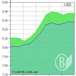 Сьогодні українські банки купують американську валюту в середньому по 8,28 грн./дол., продають – по 8,35 грн./дол.