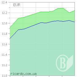 На час закриття торгів цінові показники з EUR/UAH встановлено на рівні 12,2040/12,2480 грн./євро.