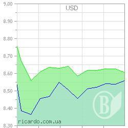 Пропозиції комерційних банків з купівлі долара коливаються в межах 8,45-8,57 грн./дол., з продажу – в межах 8,555-8,70 грн./дол.