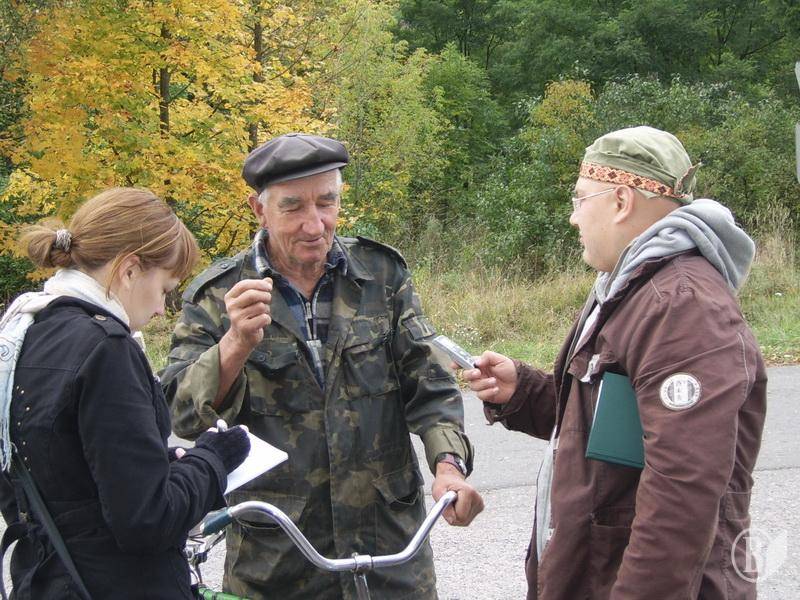 До досить чималої групи з місцевих жителів і журналістського "десанту" з боку Савичів приїхав на велосипеді дідусь. І "з ходу" дав інтерв’ю.