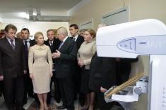 Осмотрев два отделения - рентгенодиагностики и химиотерапии, глава правительства вручила главному врачу этого заведения документы на новый мамограф - аппарат для ранней диагностики рака молочной железы.