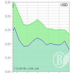 Пропозиції комерційних банків з купівлі долара перебувають у межах 8,09-8,17 грн./дол., з продажу – в межах 8,17-8,21 грн./дол.
