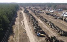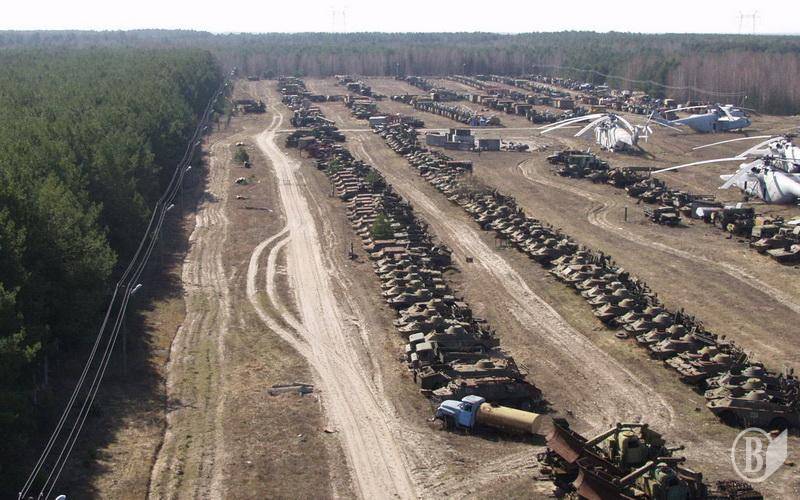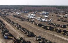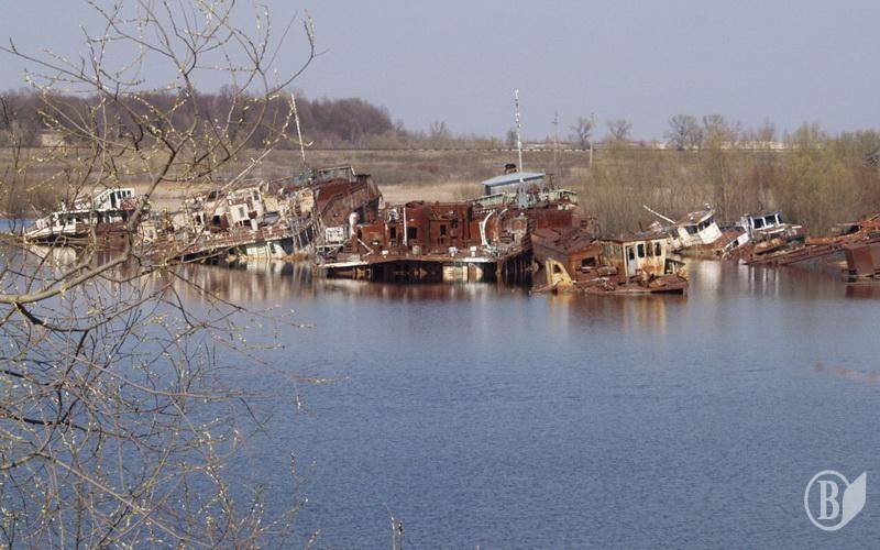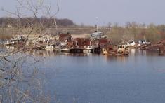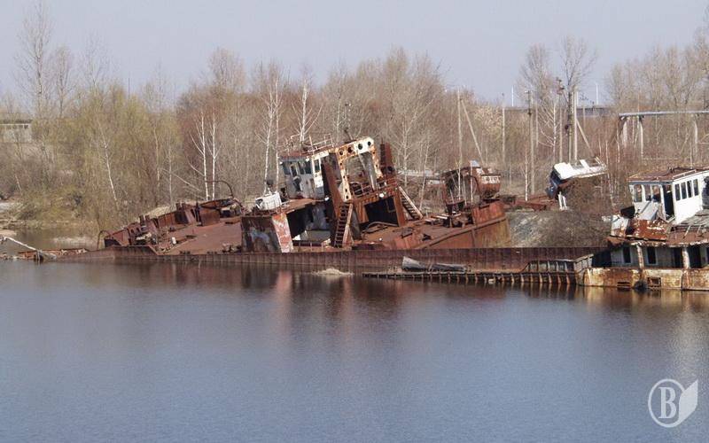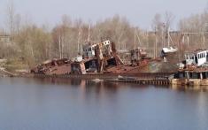 На фото: стадіон розміщення зразків техніки, яка брала участь у ліквідації наслідків аварії; затон – колишня територія ЧРЕБ (Чорнобильська ремонтно експлуатаційна база по ремонту суден) в акваторії бази на «відстої» знаходяться судна, які потрапили під радіоактивні опади у квітні 1986 року; місто Прип'ять.