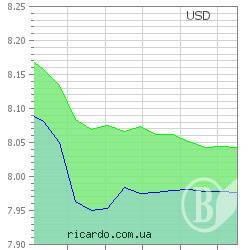 Предложения коммерческих банков по покупке доллара находятся в пределах 7,90-8,01 грн./дол., по продаже – в пределах 8,01-8,10 грн./дол.
