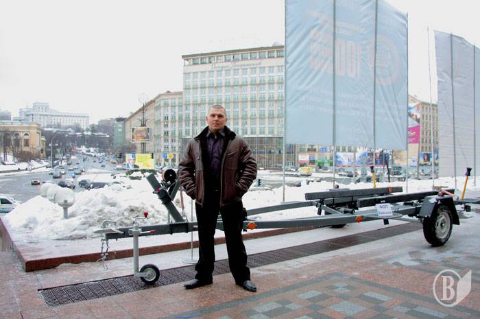 Перед входом в Украинский дом посетителей встречал автоприцеп для перевозки лодок. Это продукция черниговского предпринимателя Оксаны Кияшко.