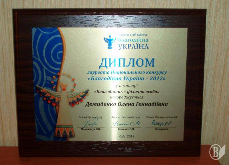 Олена Демиденко – лауреат Національного конкурсу «Благодійна Україна – 2012» (фото)