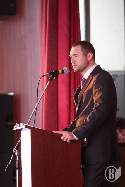 Ректор, доктор экономических наук, профессор Сергей Шкарлет ознакомил аудиторию с основными направлениями деятельности университета и особенностями учебы.