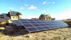 На даху будинку і госпбудівлі власник встановив 40 фотомодулів по 250 Вт плюс гібридний інвертор. Ця станція працює виключно на забезпечення будинку.