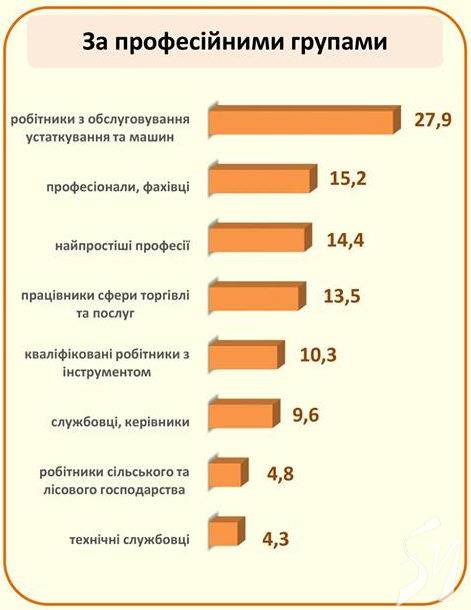 Якщо вірити статистиці Державної служби зайнятості, то найбільша вірогідність, що з її центрів вас відправлять обслуговувати устаткуваня у сільське господарство (або ж у лісове чи рибне).
