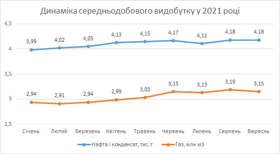 Середньодобовий видобуток нафти й конденсату демонструє зростання з початку року.