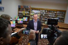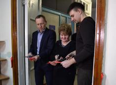 Торжественно перерезали красную ленту городской голова Владислав Атрошенко и работники библиотеки.