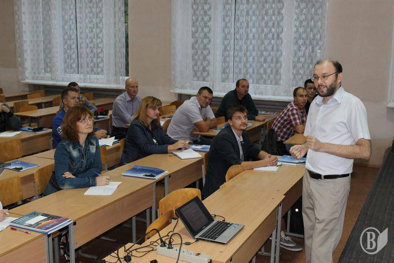 Завідувач кафедри навчального закладу Олександр Велігорський ознайомив слухачів з дисциплінами, які опановуватимуть упродовж навчання та графіком проведення занять. Він зазначив, що в ході курсу опановуватимуться як front-end так і back-end технології розробки сайтів, вивчатиметься створення шаблонів Web-сторінок та дизайн у програмах Photoshop та Illustrator, використання кодів HTML. А до кінця курсу слухачі самостійно розроблять сайт типу інтернет-магазину.