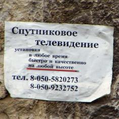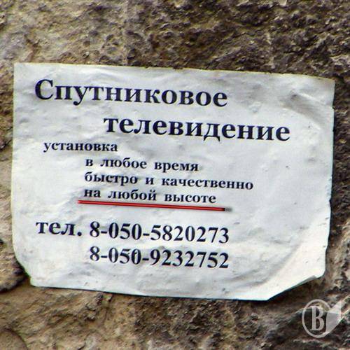 Телевізійники-тарілочники наочно демонструють можливості. І винахідливість. Об'ява-то "на шару". Ніхто не зірве. Рекламний носій непорушний.