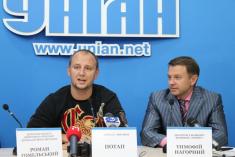 Инициативу компании «УКРНЕТ» поддержали и правообладатели, и популярные артисты. В пресс-конференции приняли участие певец и продюсер Потап, директор отдела цифровых продаж компании Moon Records Роман Гомельский.