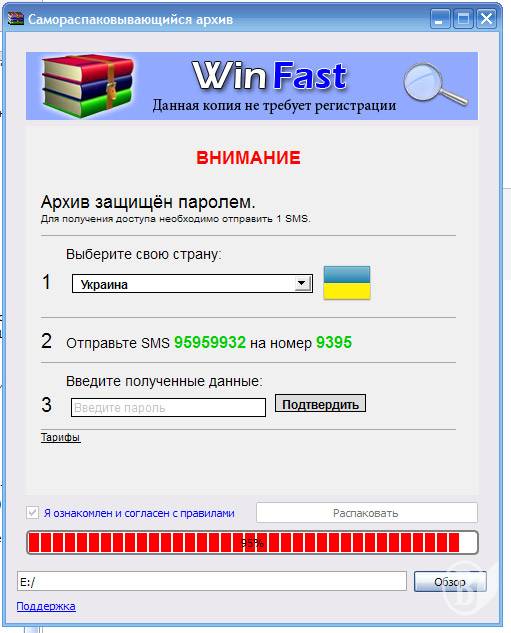 Третье: в окне программы изображена липовая инструкция, которая не содержит ключевого действия, – «Отстегивание бабла» через послание SMS.