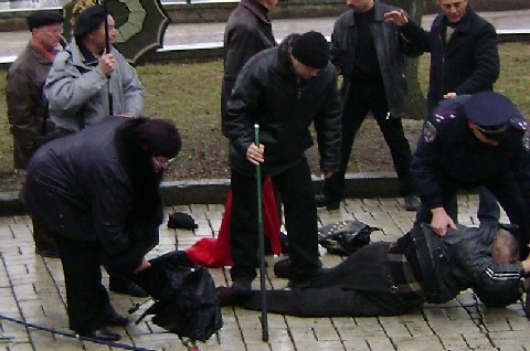 седой чел, которого мент постелил на пол, - толстый коммунист, автор и участник многих черниговских провокаций