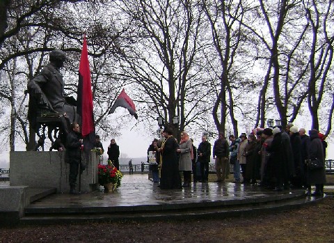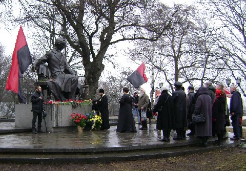 Після урочистостей біля пам’ятника Кобзарю залишилась Почесна Варта Чернігівської організації Конгресу Українських Націоналістів з червоно-чорними прапорами. Вони очікуючи православних священників Київського Патріархату, щоб разом помолитися.