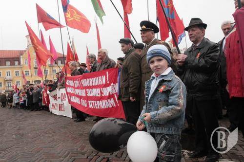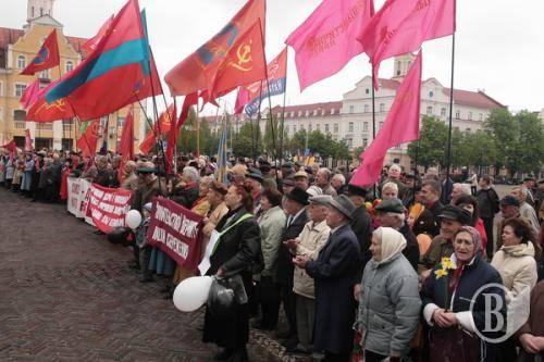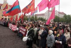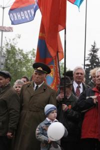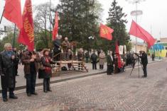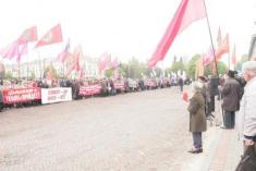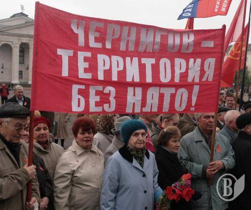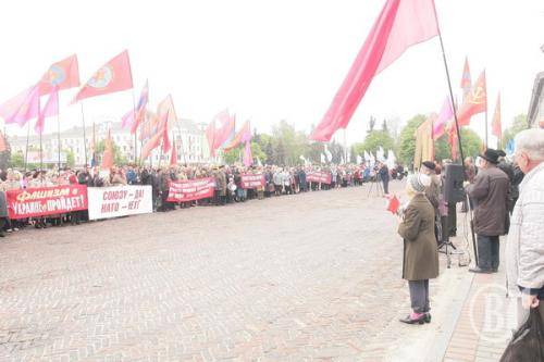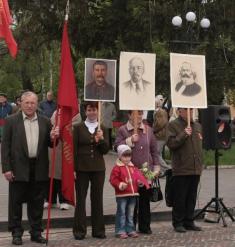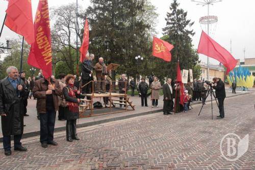 Близько 200 людей переважно похилого віку, представники поглядів КПУ, СПУ та ПСПУ пройшли традиційним першотравневим маршем від видавничого комплексу «Деснянська правда» до Красної площі під супровід духового оркестру.