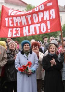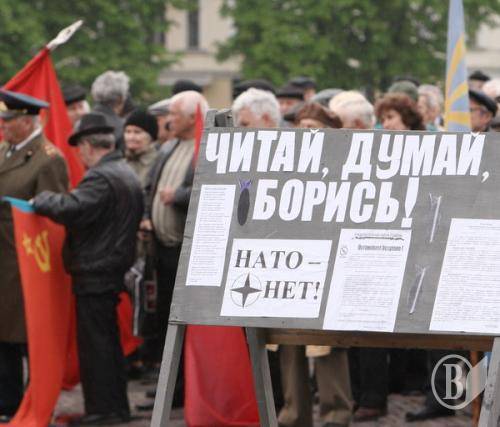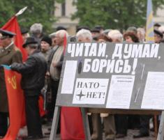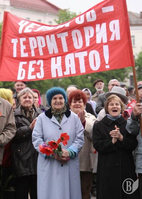 Присутні тримали та виголошували антинатівські гасла, надували кульки, співали частівки під гармошку.