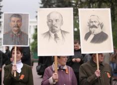 Бачу на фото відносно не стара жінка тримає портрет Джугашвіллі. Якого біса? Сама не застала мабутть, то чого пхатися з ним на демонстрації? Фу. Хоч би вже встромили в руки тому хто жив у той час.