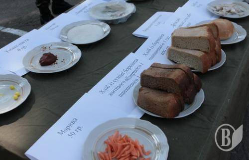 Собравшиеся имели возможность ознакомиться с образцами вооружения, нормами пищевого и вещевого обеспечения военнослужащих.