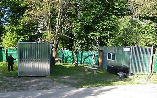 І правильно вважав. Ось вже і перші споруди виросли. Зокрема, нужник для рядових виконавців нищення парку. Аби могли справляти нужду на центральній парковій (поки що) алеї міста, як то кажуть - не відходячи від каси зі срібниками.
