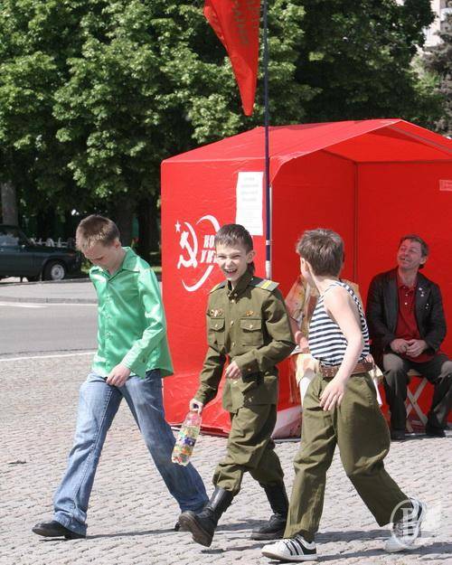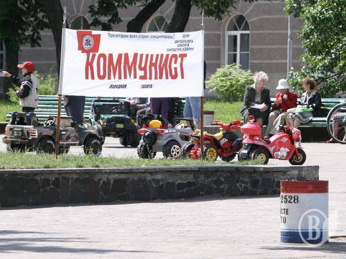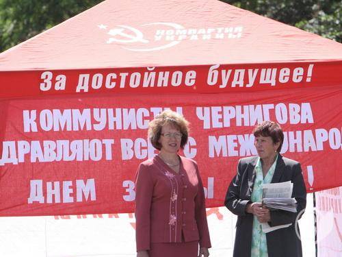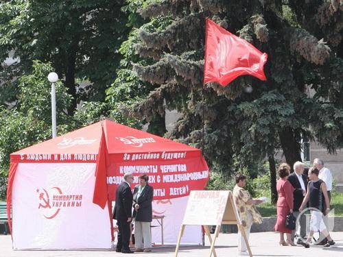 У Чернігові 1 червня відбулася акція лівих партій. Комуністи робили свою червону справу і на День захисту дітей: агітаційні намети, лозунги, прапори... і онуки у галіфе!