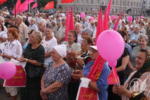 Втім, схоже більшість протестуючих, тобто слухачів оратора, живуть не на зарплати, а на пенсії.