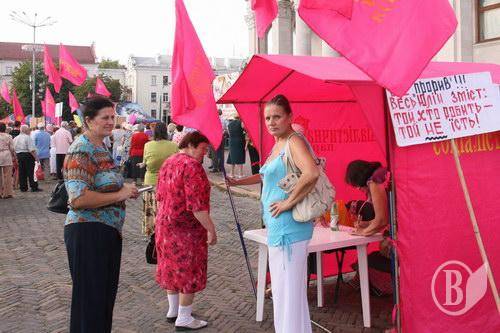 Учора на Красній площі у Чернігові відбулась акція протесту. Вона була анонсована папірцями-наклейками без зазначення організаторів акції.