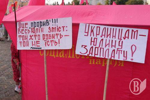Проти чого протест? Судячи з анонсу – проти "злочинних дій влади" і ще проти "погіршення життя простих людей". А судячи з деяких гасел – проти зарплати якоїсь Юлі.
