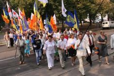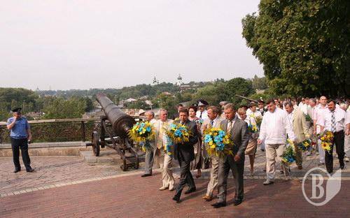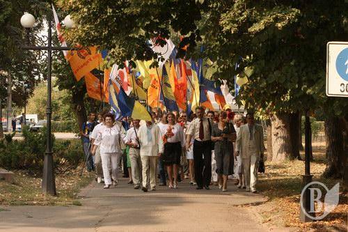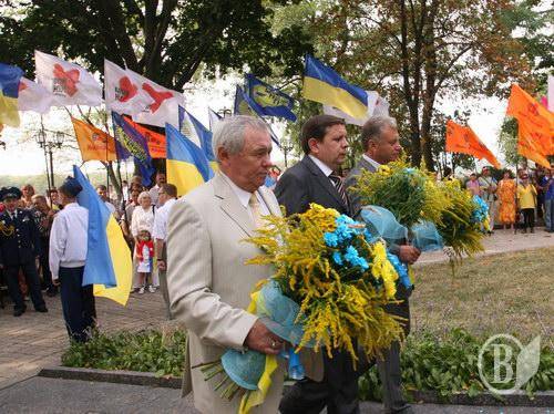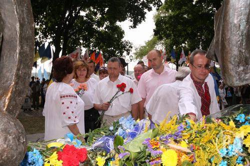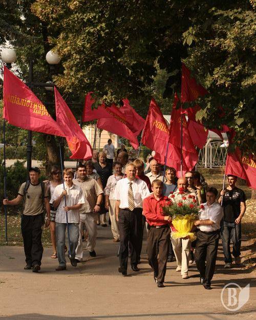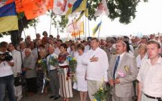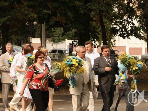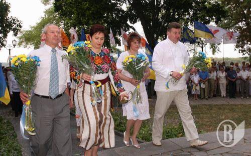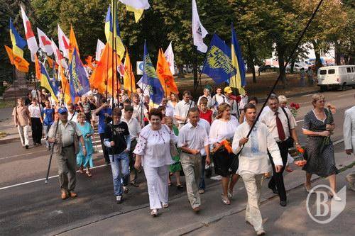 Прибули представники облдержадміністрації, міської та обласної ради. Єдиною колоною підійшли представники демократичних сил – БЮТ, УНП, НСНУ. Окремо підійшла колона під прапорами Соціалістичної партії.