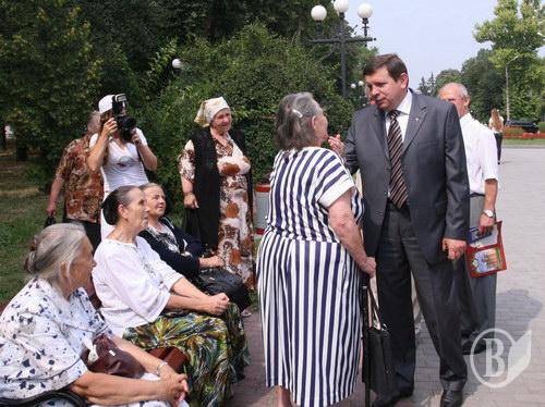 Сьогодні у Чернігові на Алеї Героїв, після урочистих заходів біля Каменя борцям за волю України пенсіонери зупинили голову Чернігівської ОДА Володимира Хоменка і напалися на нього зі своїми проблемами.