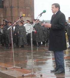На митинге также выступили председатель Совета ветеранов войны и труды города Чернигова Нина Четвертак, воспитанники летного лицея.