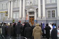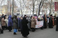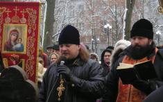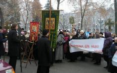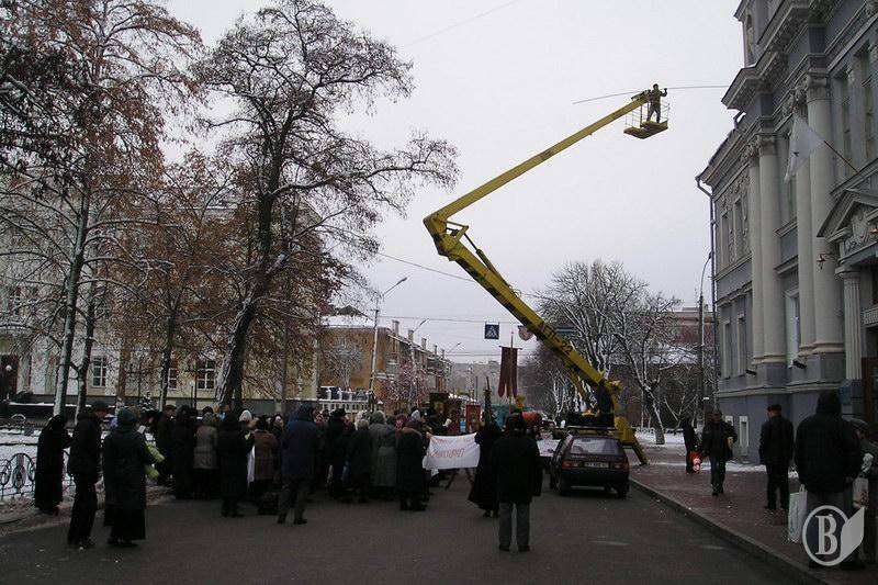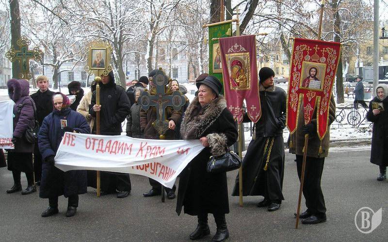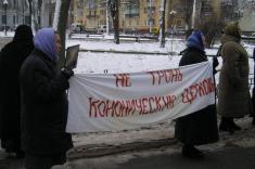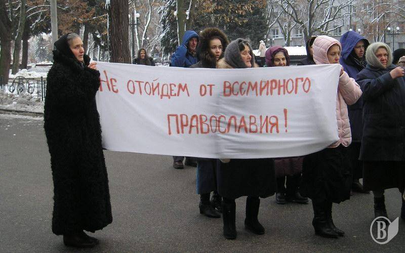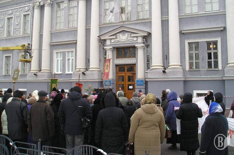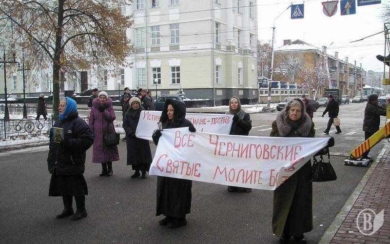 Сьогодні православні віруючі пікетували міську раду Чернігова під проводом працівників культу Української православної церкви Московського патріархату.