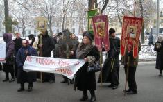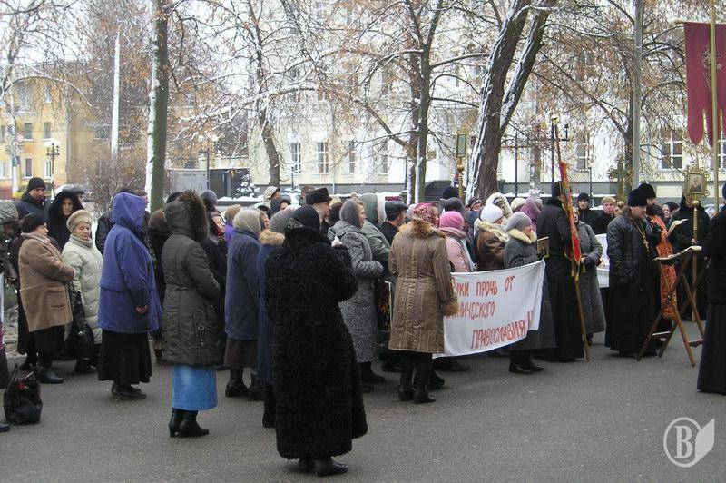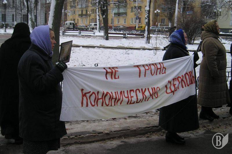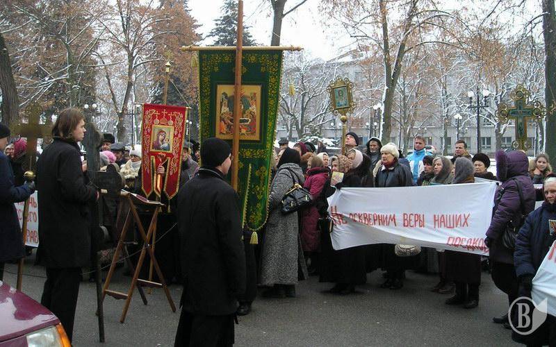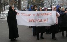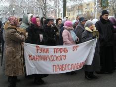 просто ржунімагу: один транспарант "Руки прочь от кАнонического православия", інший "Не тронь кОноническое православие"