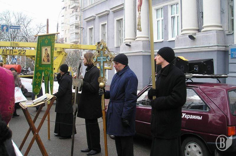 До пікету в боротьбі за нерухоме майно – храм святої великомучениці Катерини – приєдналися також активісти Прогресивної соціалістичної партії України (авто з гучномовцями на фото).