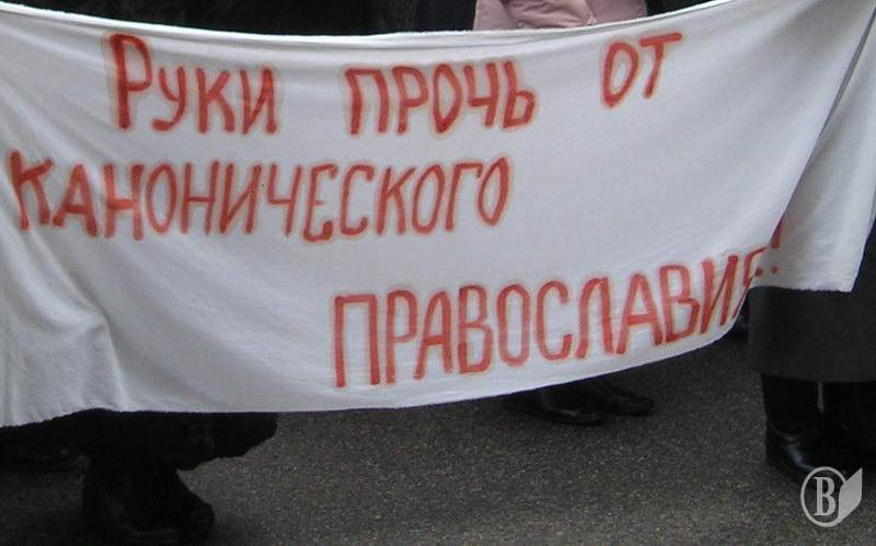 Требование этой пёстрой пикетирующей компании - передача Украинской православной церкви Московского патриархата недвижимого имущества - храма Святой Екатерины.