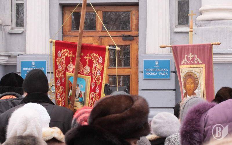 В Чернигове в который раз состоялась удивительная церковно-партийная политически-религиозная акция под стенами городского совета.