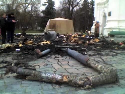 Втім, новий намет-храм постав вже за кілька днів. Значно швидше, ніж було прибране саме згарище.