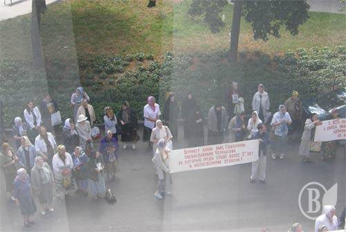 Поруч, у похідному наметі під стінами храму прихильники УПЦ МП продовжували своє молитвенне стояння. Їх вирішили підтримати, не зважаючи на відсутність таких повноважень, депутати міської ради.