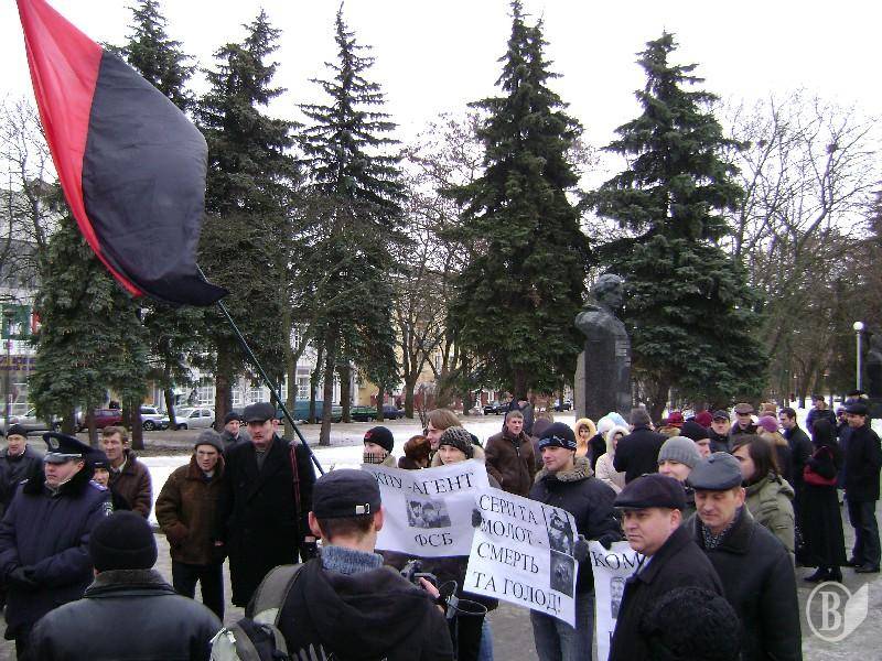 В центре Чернигова, около памятника Антону-Овсиенко, Черниговские националисты провели митинг протеста в пятницу, 30 января.