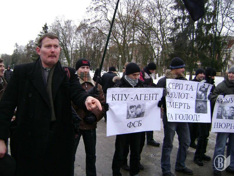 Представители Конгресса Украинских Националистов и ВО «Трезуб» выразили свой протест относительно безнаказанной деятельности антиукраинских прокоммунистических партий Украины, которые своими действиями дестабилизировали политическую и экономическую ситуацию в государстве.
