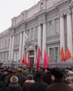 Левый митинг перед серым зданием