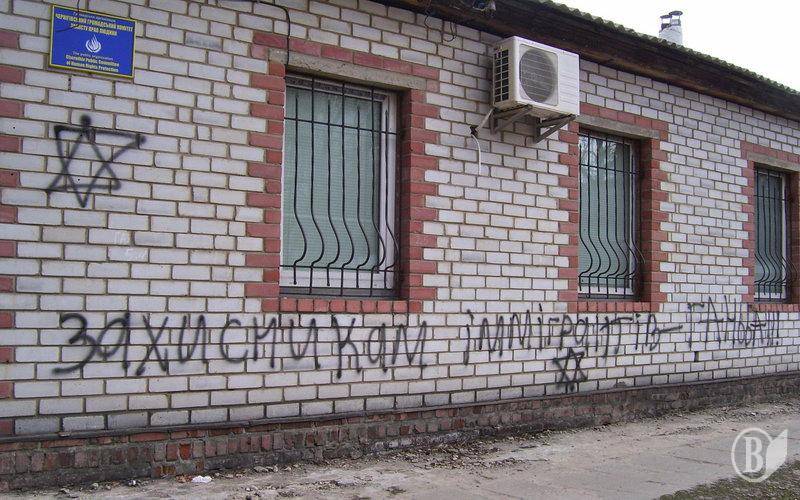 Ночью с воскресенья на понедельник, 13 апреля, кто-то оставил надпись на стене помещения Черниговского общественного комитета защиты прав человека.